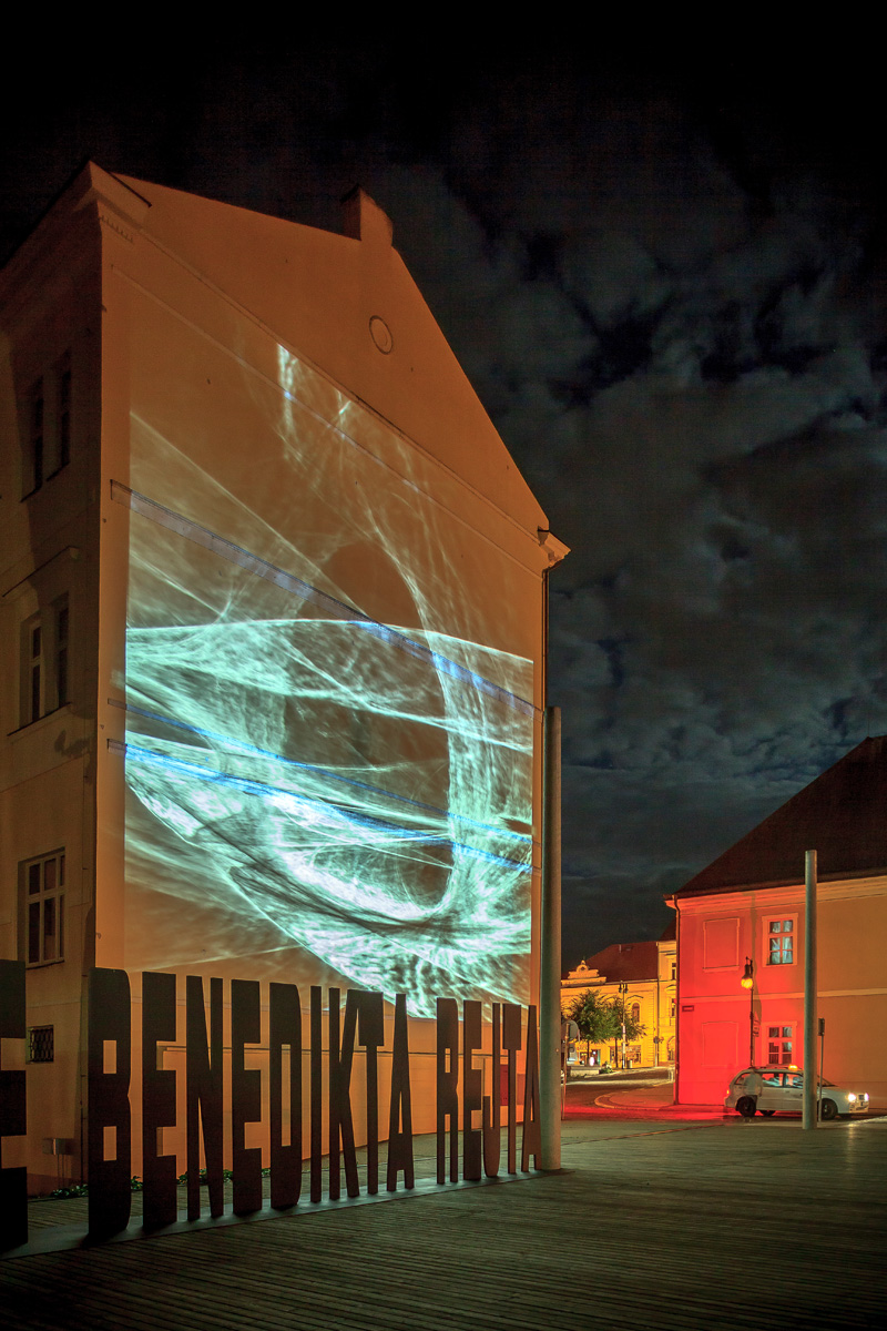 Jan Hladil: Šum světla, abstraktní videoart, volná audiovizuální generovaná kompozice. Foto © Jiří Jiroutek